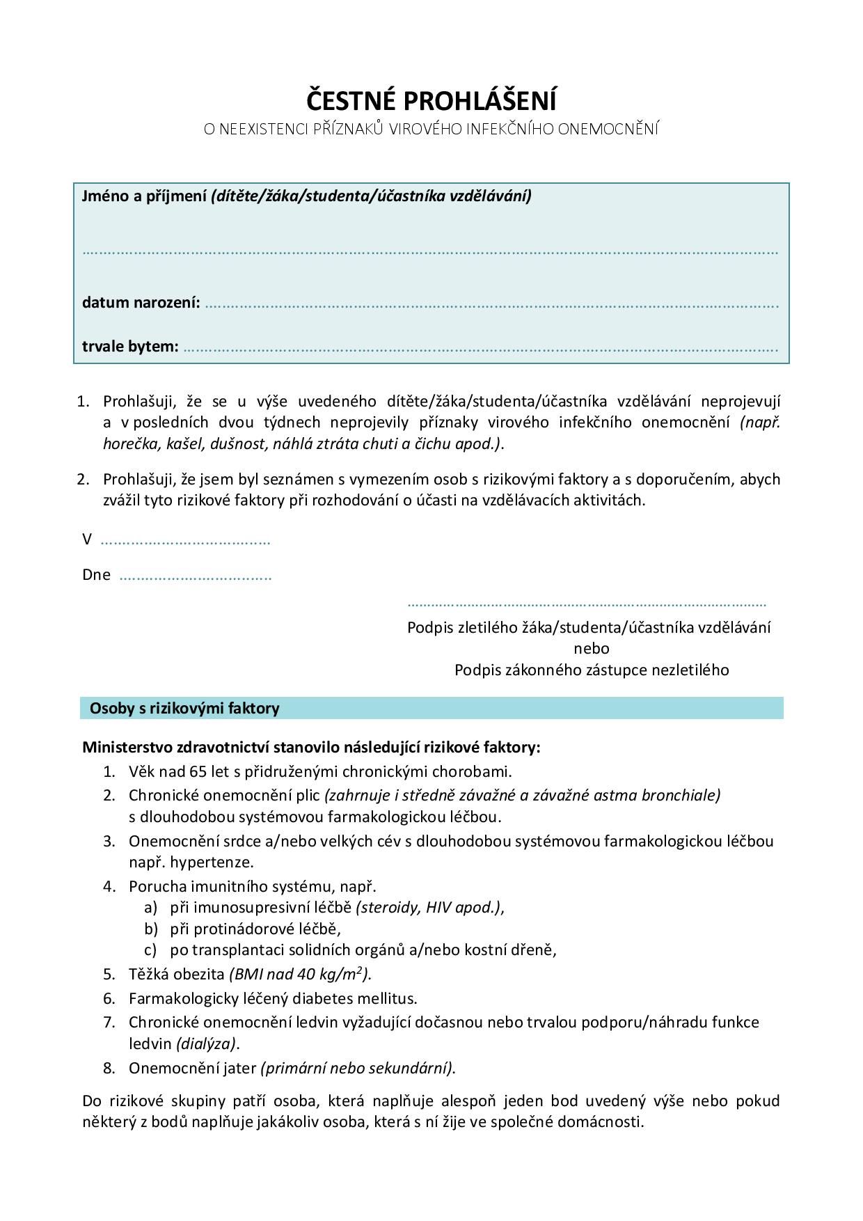 Prosím všechny vedoucí skupin, kteří začnou příští týden trénovat, aby před prvním tréninkem nechali rodiče (děti) podepsat toto čestné prohlášení.